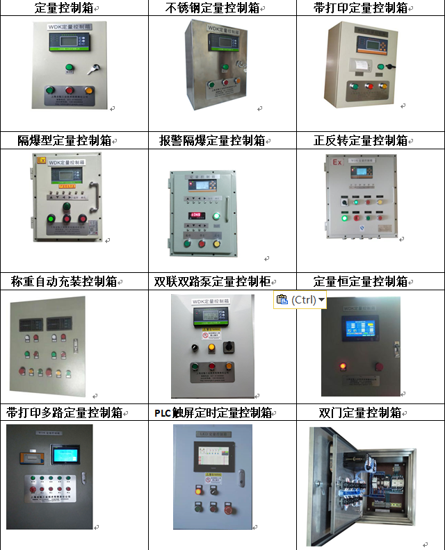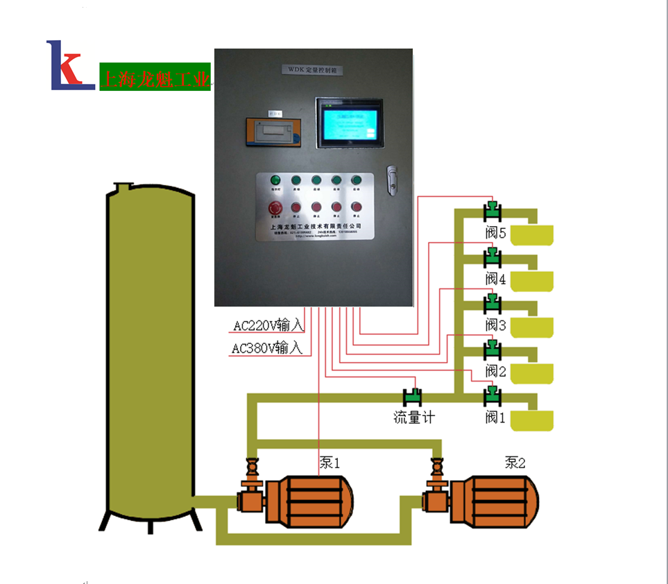 ? ? ?上海龍魁工業(yè)技術(shù)有限公司的WDK觸摸屏定量控制柜(箱)及WDK觸摸屏定量控制系統(tǒng)、WDK觸摸屏定時(shí)定量恒量控制柜(箱)、WDK觸摸屏PLC變頻恒量控制柜(箱)、WDK觸摸屏定量灌裝控制系統(tǒng)、WDK觸摸屏定量配發(fā)料控制系統(tǒng)的其他定量控制配套產(chǎn)品都要根據(jù)現(xiàn)場流體的物理/化學(xué)屬性、周圍環(huán)境、以及具體要求來選擇合適的高精度流量計(jì)(如電磁流量計(jì),渦輪流量計(jì),齒輪流量計(jì),質(zhì)量流量計(jì)等)來測量流量,?根據(jù)測量介質(zhì)、管道口徑、流量范圍、控流量大小、電機(jī)與泵的速度、防腐、防爆、防護(hù)等級(jí)等參數(shù)和要求進(jìn)行設(shè)計(jì)及配置選型WDK觸摸屏定量控制柜(箱)及WDK觸摸屏定量控制系統(tǒng)