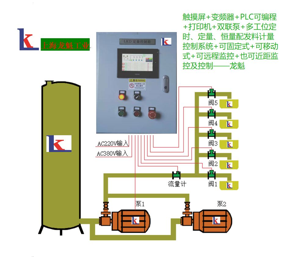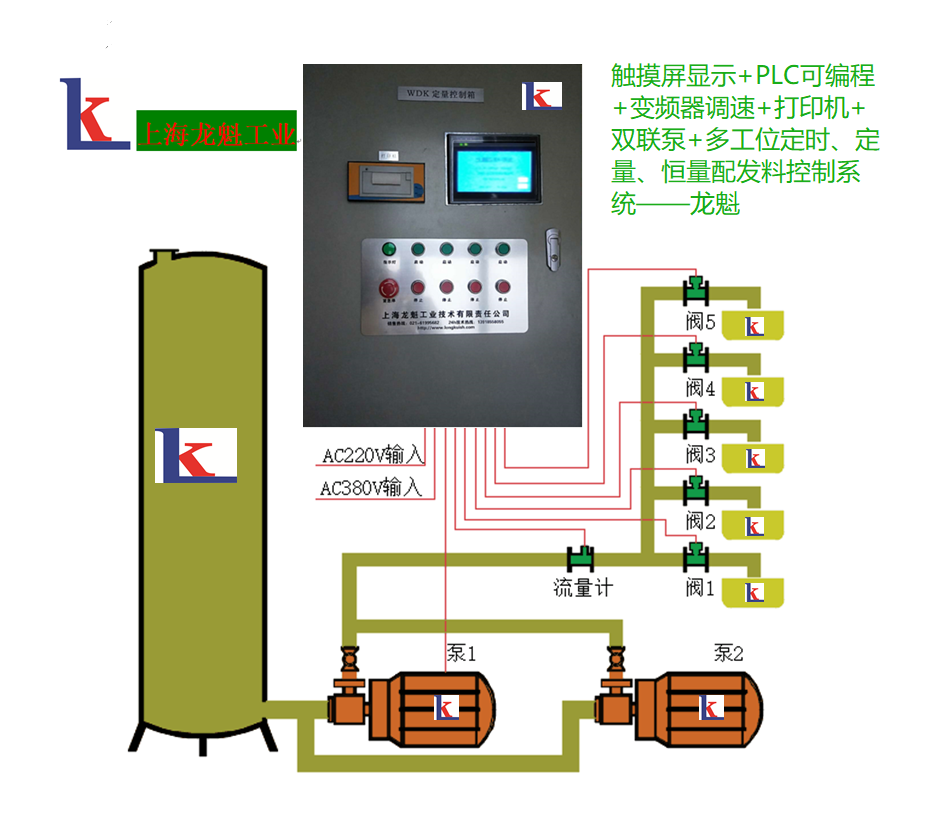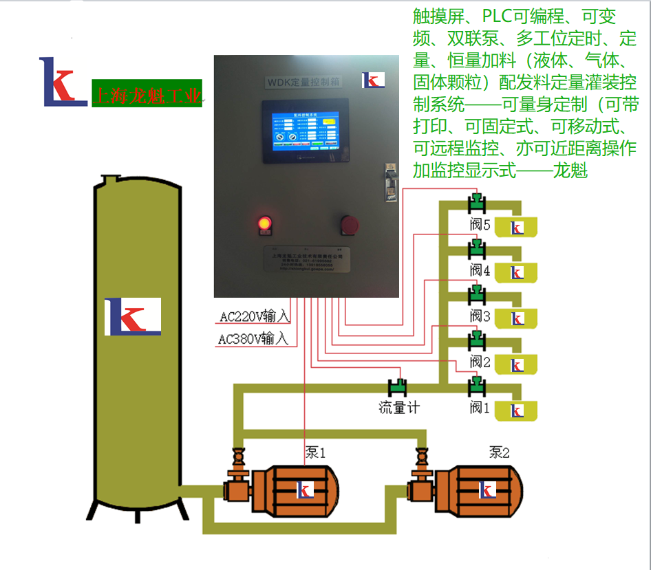 5、PLC觸摸屏雙聯(lián)泵多工位配發(fā)料定?量?控?制?系?統(tǒng)的定量控制柜可加變頻器控制電機轉速來恒定補液的速度;